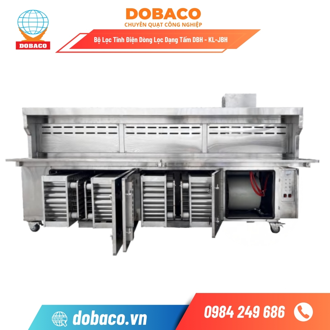 DOBACO là nhà sản xuất quạt công nghiệp và thiết bị lọc tĩnh điện hàng đầu Việt Nam với hơn 19 năm kinh nghiệm. Chúng tôi cam kết mang đến giải pháp xe đẩy nướng không khói trọn gói với chất lượng đạt chuẩn quốc tế và dịch vụ bảo trì tận tâm nhất trên toàn quốc.